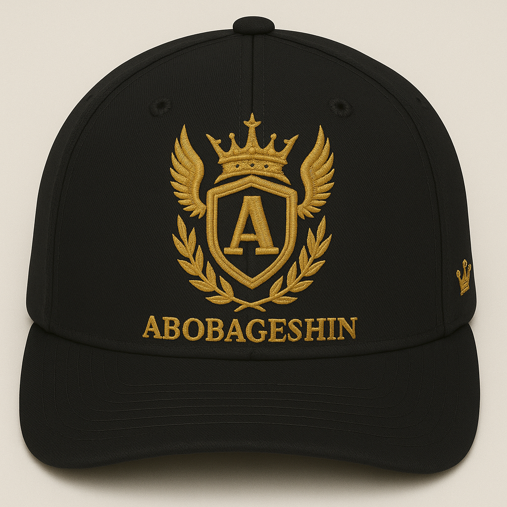 Step into your greatness with the Crest of Kings Hat, a bold and regal statement piece from ABOBAGESHIN. Designed for those who lead with confidence and carry the aura of royalty, this premium black cap showcases an intricately embroidered golden crest — featuring a crowned shield, soaring wings, and a laurel of victory.